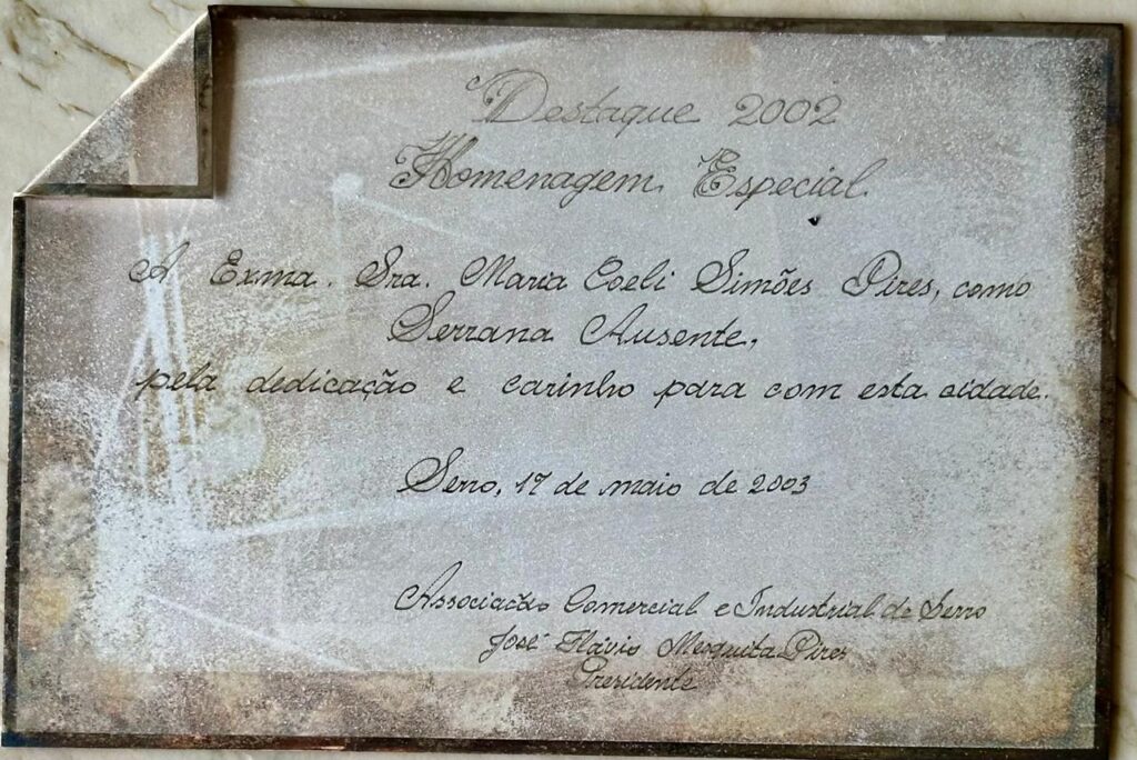 6. – Destaque 2002 – Homenagem Especial Serrano Ausente, Associação Comercial e Industrial de Serro, 17 de maio de 2003.