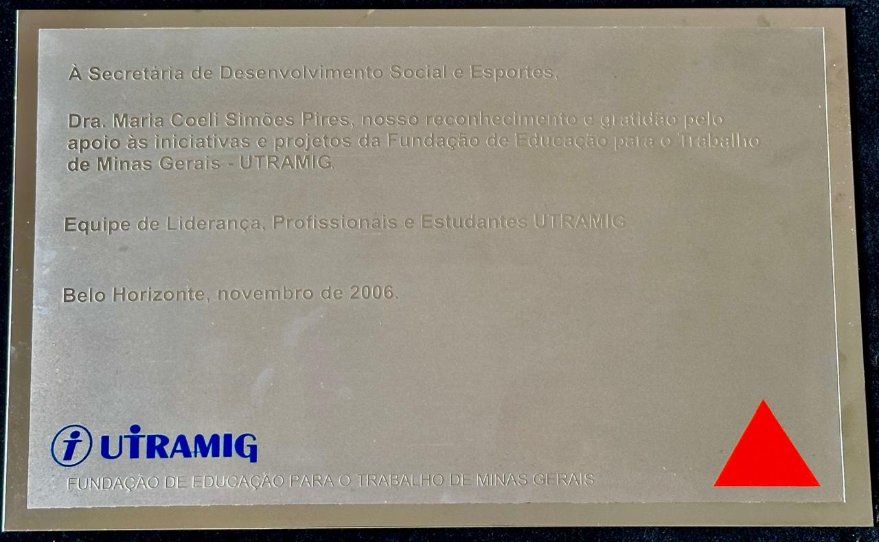 9. – Placa de Reconhecimento e Gratidão, UTRAMIG, novembro de 2006.